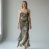 Abito elegante con ricami a mano in seta. Taglia 42